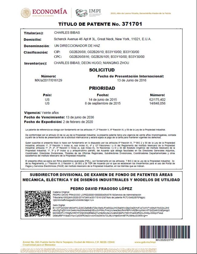 Great Neck, NY – October 19, 2020, the Mexican Institute of Industrial Property (MIPI) – On October 2020, the MIPI notified Tecnica for granting patent number 371701 to Tecnica for its laser print head system. This is the first patent granted by the State of Mexico its Tecnica3D printing technology. The patent further secured Tecnicas’…